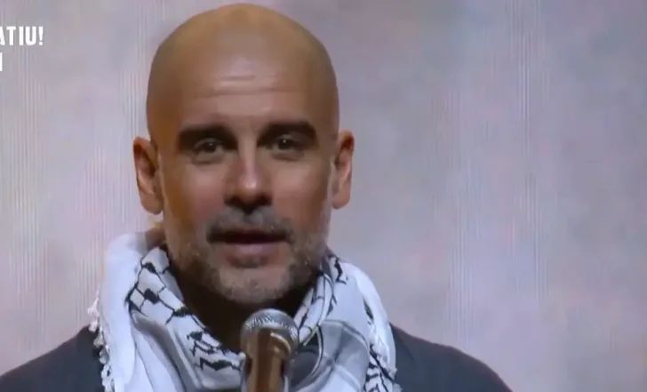 מאמן הכדורגל פפ גווארדיולה, אחד המצליחים בתולדות המשחק, נשא דברים בשבוע שעבר, עטוי כאפיה פלסטינית שחורה-לבנה, במופע צדקה שנערך בברצלונה, שבו "גויסו כספים לטובת עניינים עממיים והומניטריים ברצועת עזה" (לפי דיווח ב"ישראל היום").